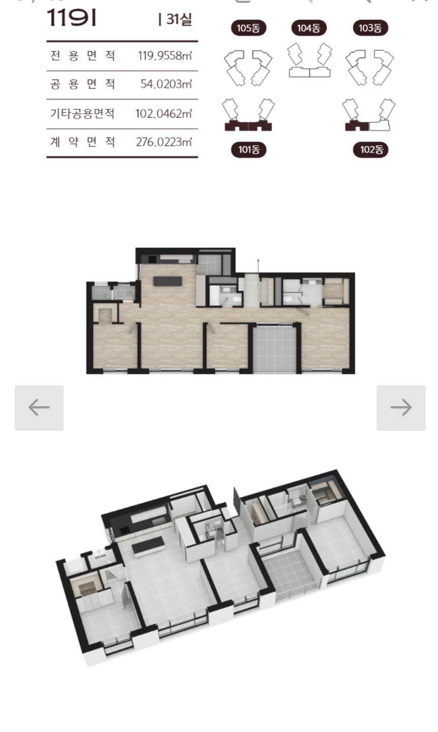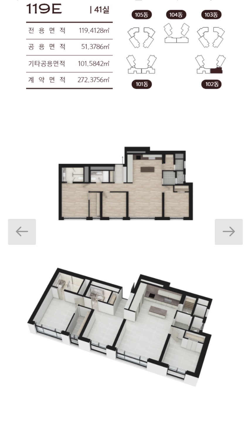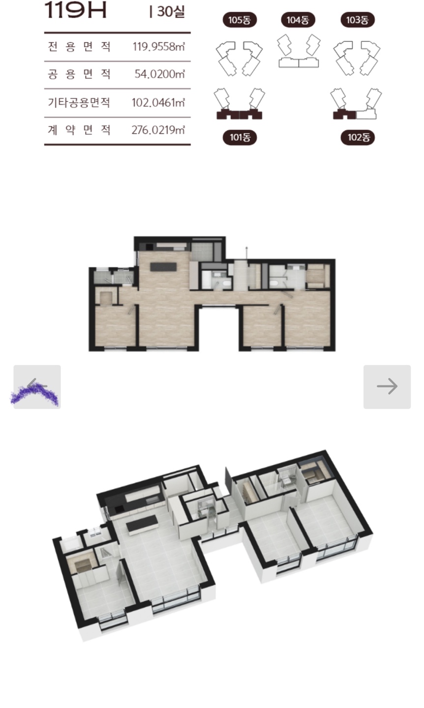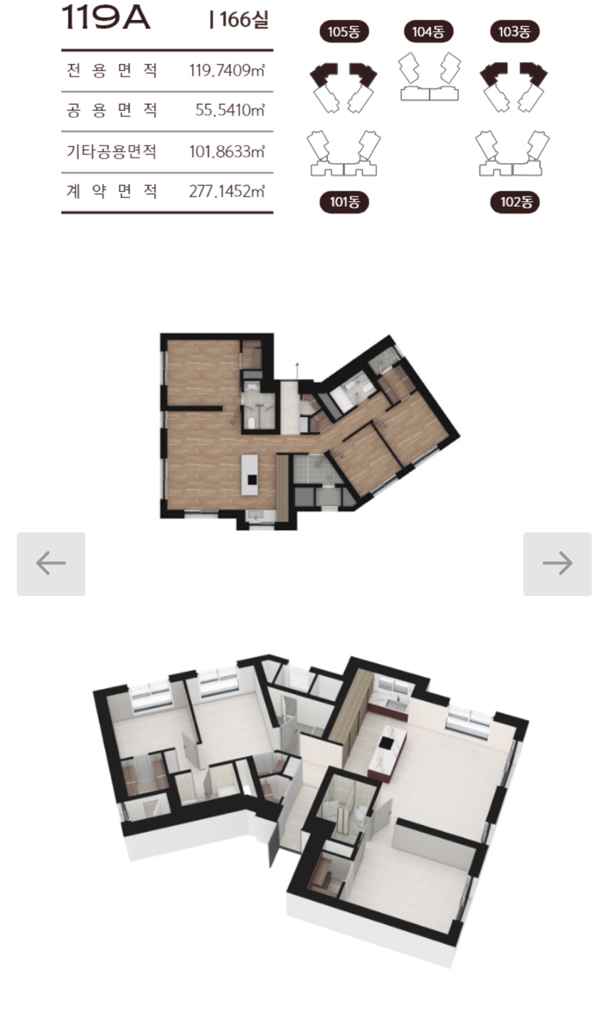 전용면적 119㎡(36평),169㎡(51평)으로 중대형 평형대로 구성됩니다.