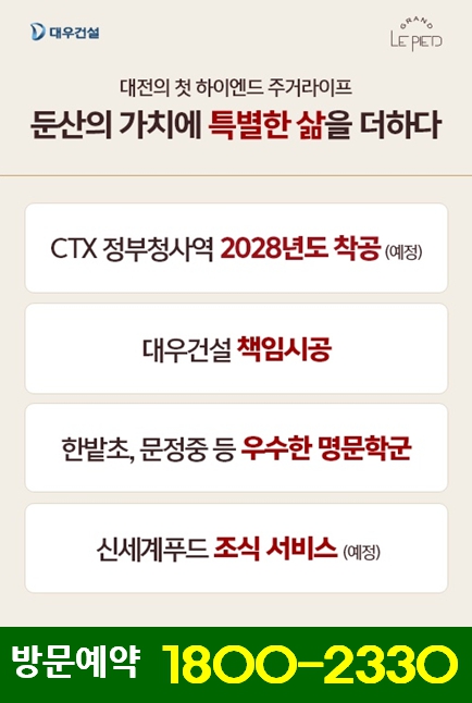 대전의 최중심 입지인 둔산동에 들어서는 하이엔드 주거상품인 '그랑 르피에드' 회사보유분 특별분양을 시작합니다.