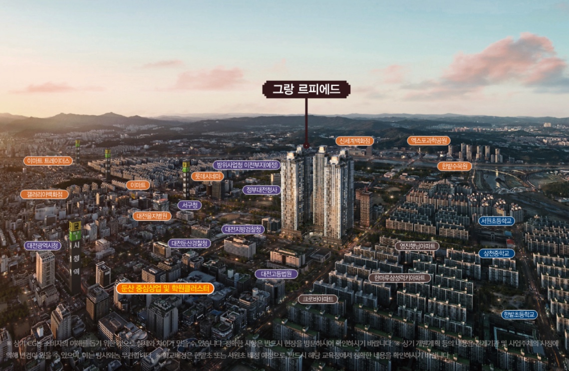 그랑 르피에드는 합리적인 고급 주거옵션과 뛰어난 입지조건,차별화된 커뮤니티 시설로 대전에서 프리미엄 주거를 원하는 실수요자와 투자자 모두에게 매력적인 하이엔드 주거 상품입니다.