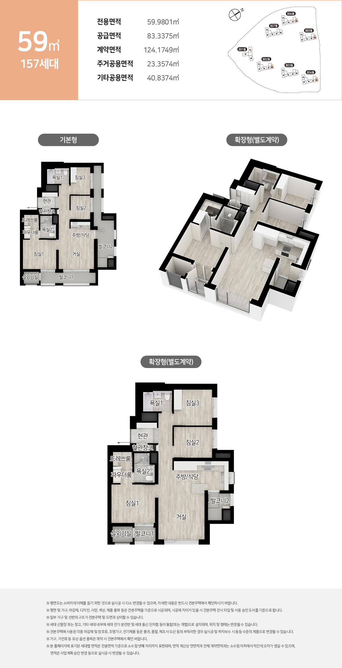 전용면적 59,75,84,101,110,136P제곱미터로 평형대가 다양하게 구성되었습니다.