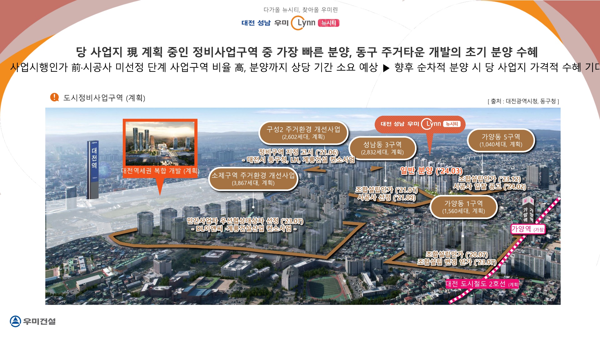 대전성남 우미린 뉴시티 아파트 인근에는 구도심 정비사업이 24개 구역으로 향후 3만2674세대가 들어오는 신흥 아파트 주거타운으로 들어옵니다.