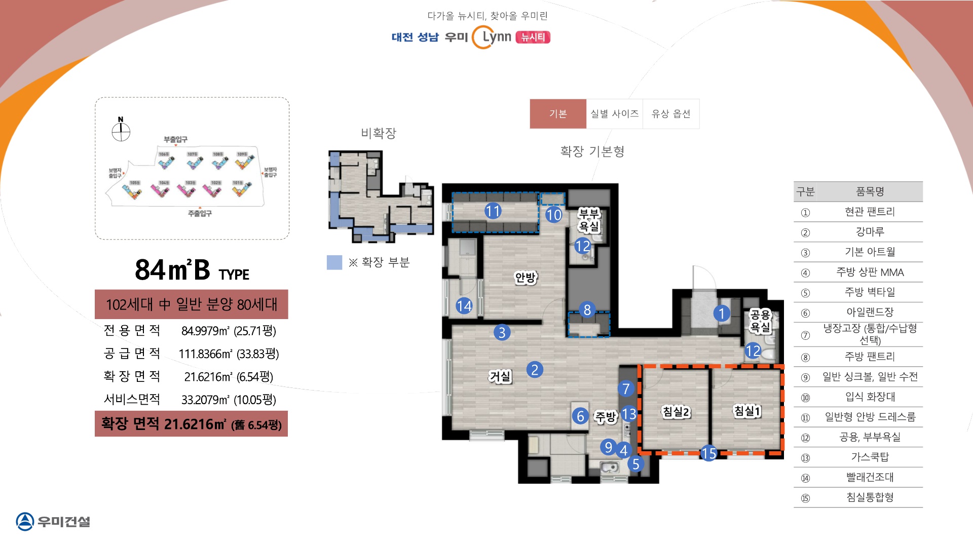 전용면적 39,59,77,84㎡로 중소형 평형대로 다양하게 구성됩니다.