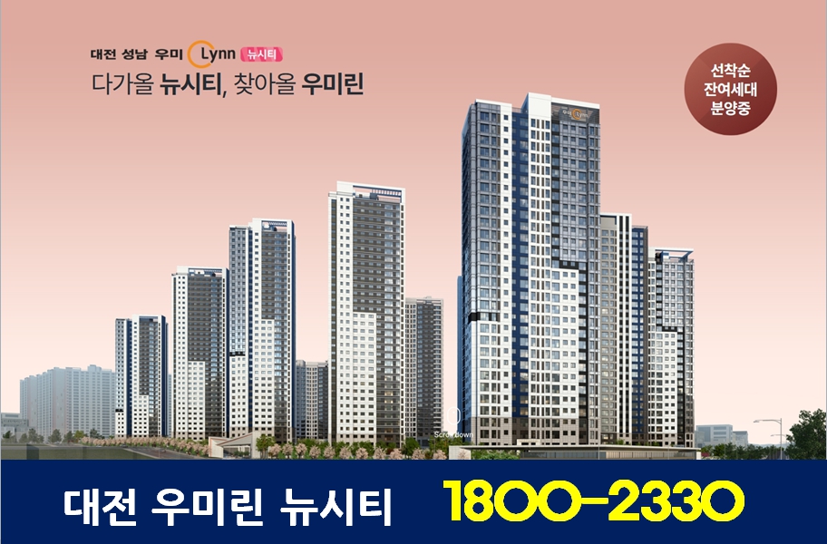 대전 성남 우미린 뉴시티 아파트는 잔여세대 선착순 동호지정 시작합니다.