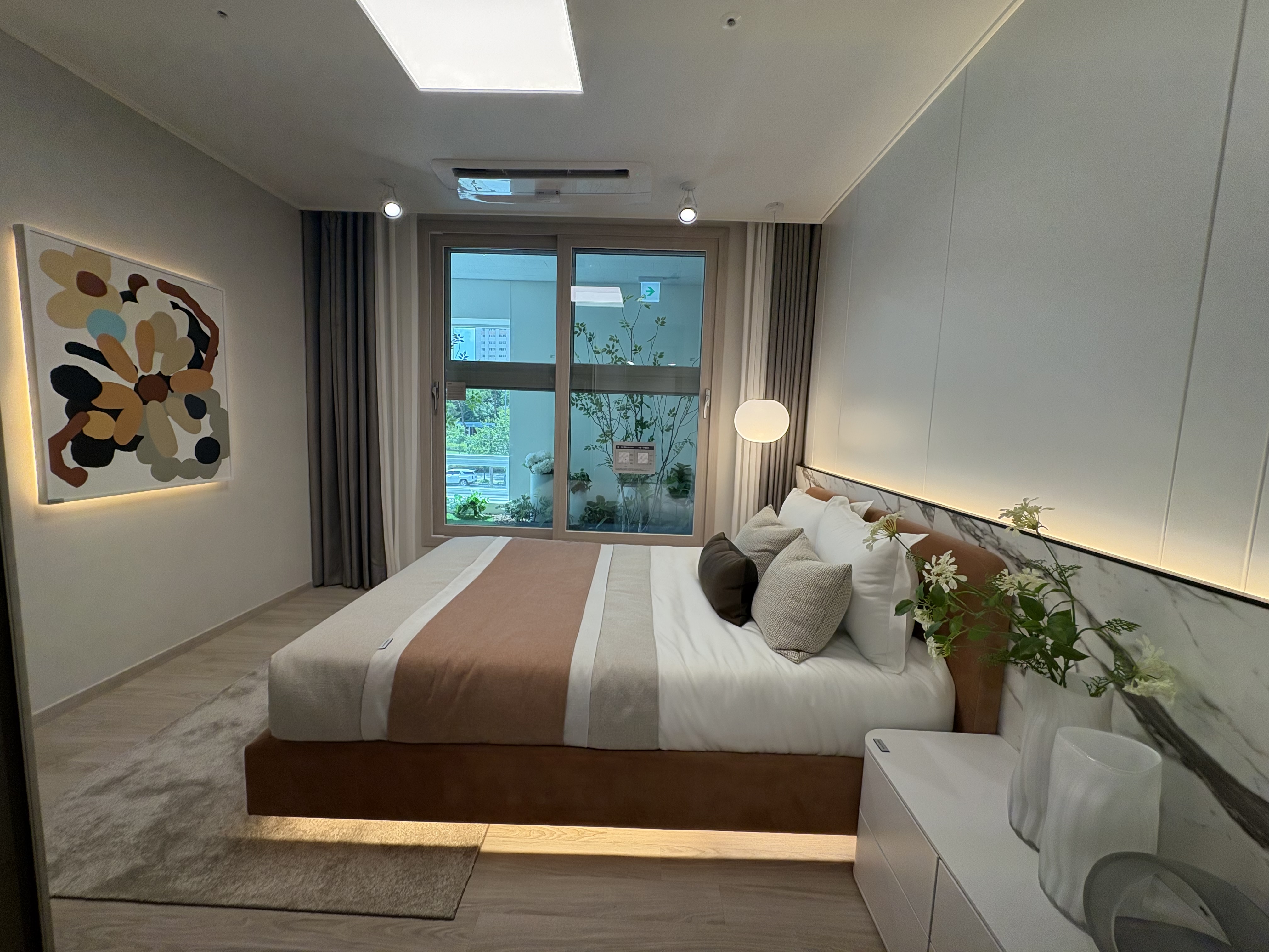 광폭 강마루,아트월 포세린 타일,드레스룸 벽판넬형 시스템 가구,3연동 슬라이딩 도어 등을 제공합니다.