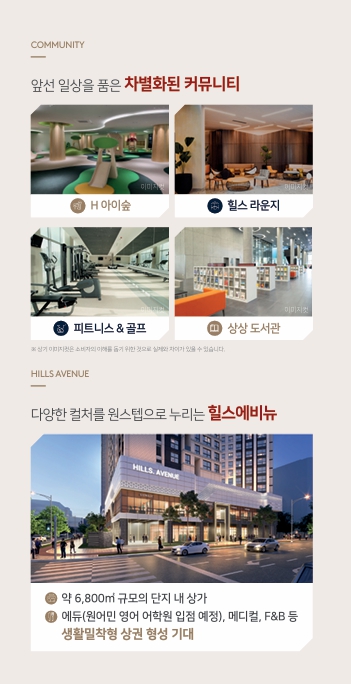 힐스테이트 둔산 커뮤니티 센터에는 피트니스 센터,건식사우나,실내골프연습장,GX룸,H아이숲,독서실,생활지원센터 등이 들어옵니다.