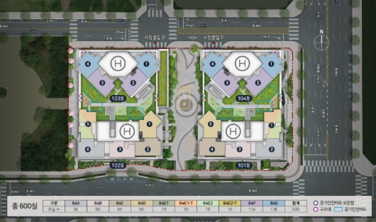 힐스테이트 둔산은 지하7층~지상 37층,4개 동,총 600실의 규모로 조성됩니다.